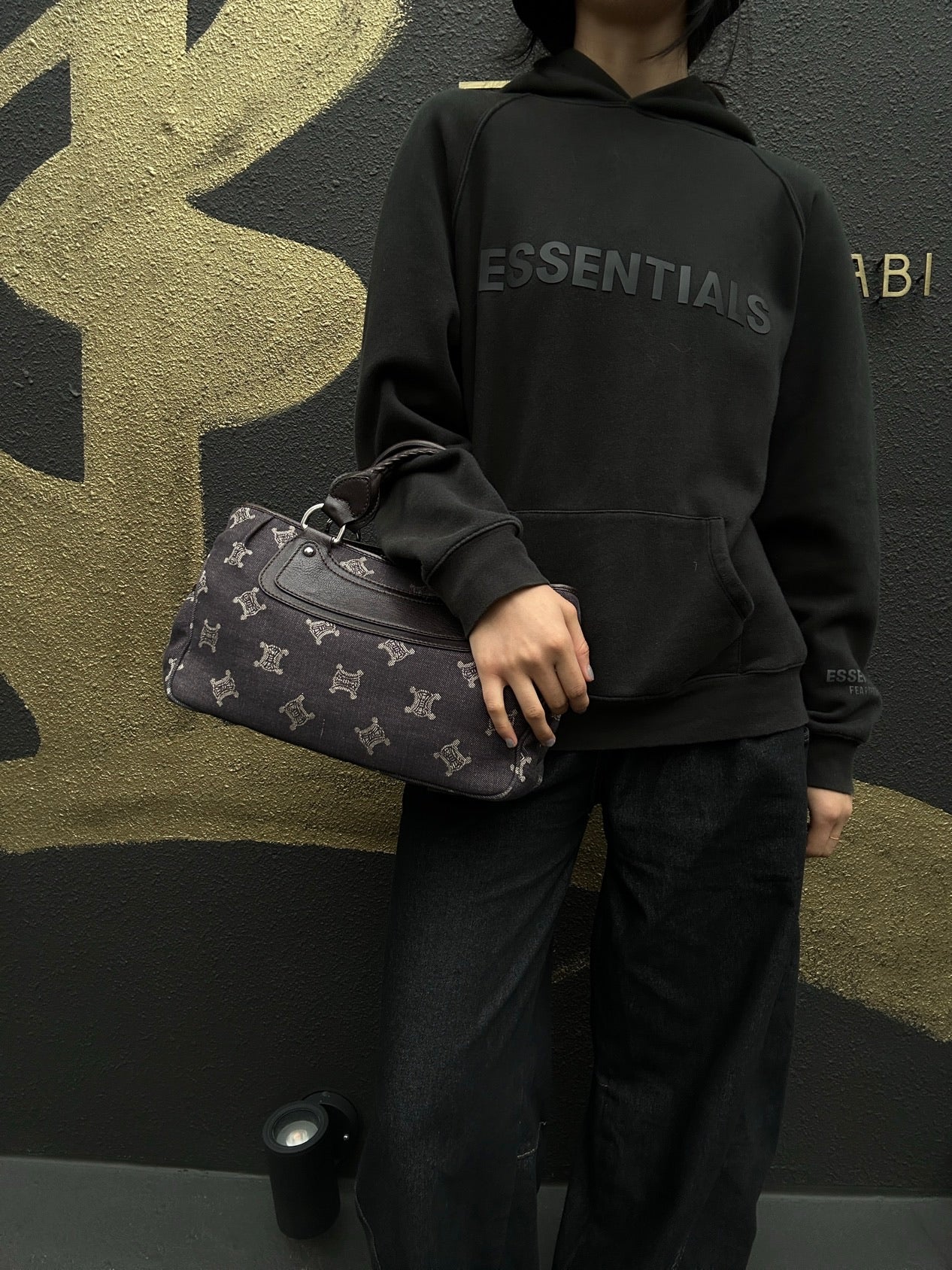 CELINE Bogie Handbag, Blue Denim with Macadam Pattern