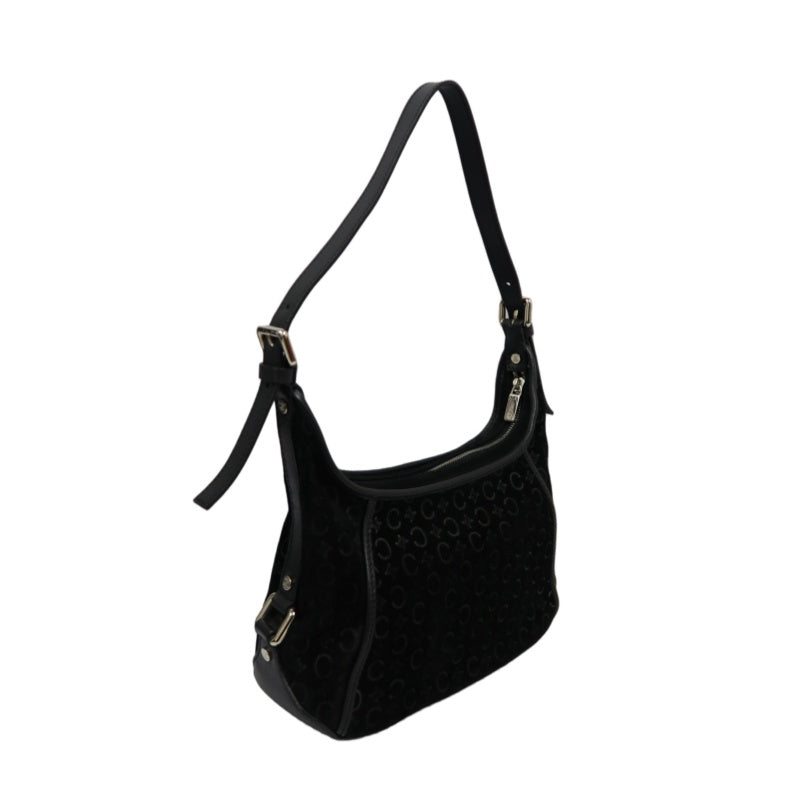 CELINE C Macadam Shoulder Bag, Suede, Black, Silver Hardware,