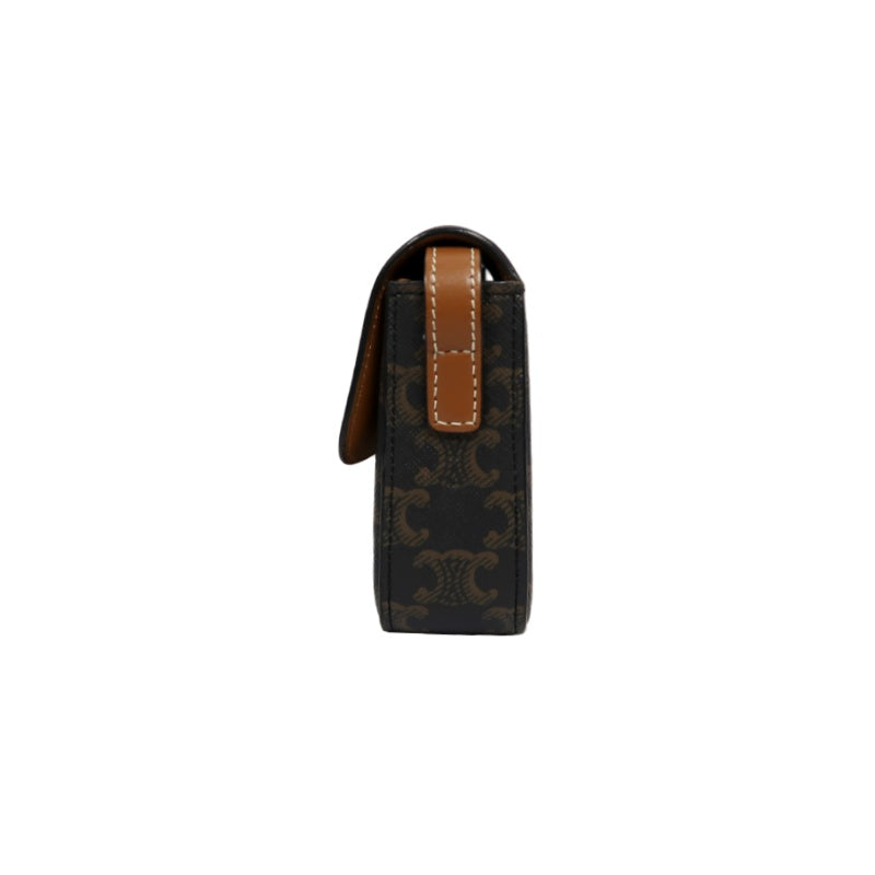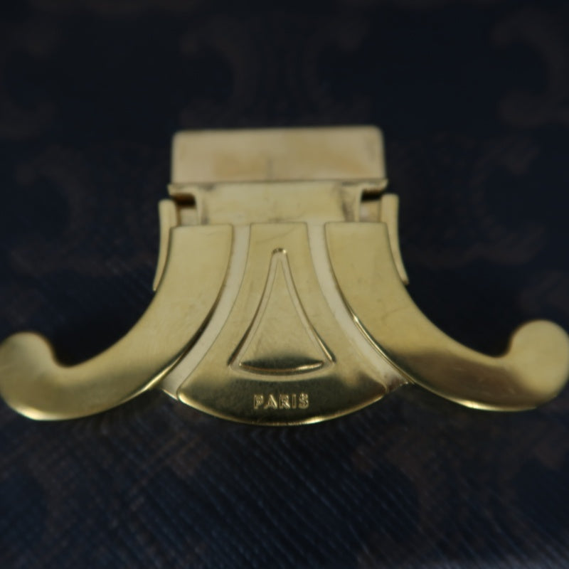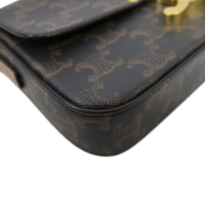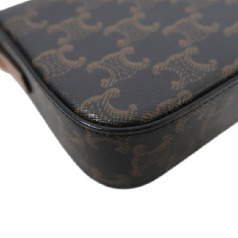 CELINE Claude Triomphe Shoulder Bag, Brown, Gold Hardware, PVC