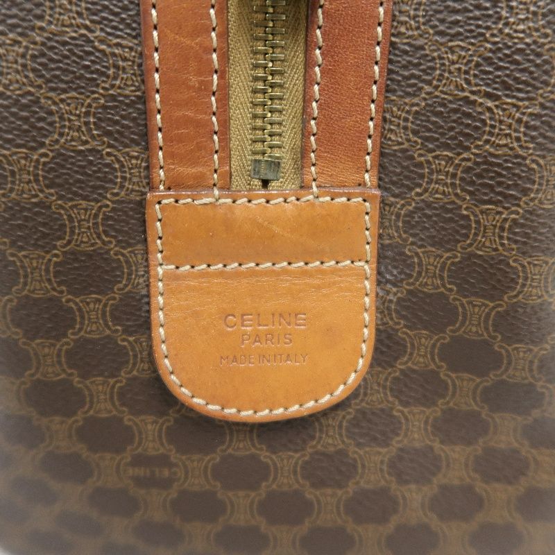 CELINE Macadam Pattern Brown Coated Canvas Mini Boston Handbag
