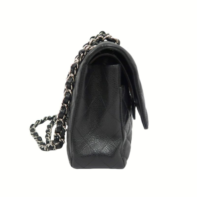 CHANEL Quilted Classic Flap Shoulder Bag, Caviar Leather, Black, Silver-Tone Hardware