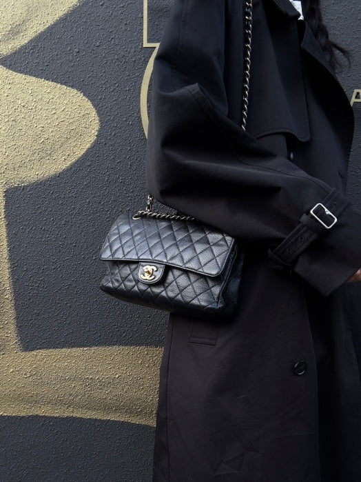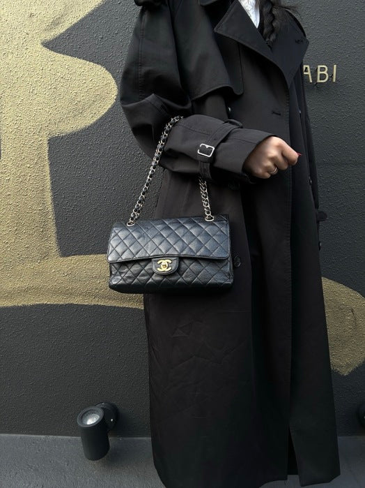 CHANEL Classic Flap (CF) Crossbody Bag - Black, Grained Calfskin with Gold Hardware
