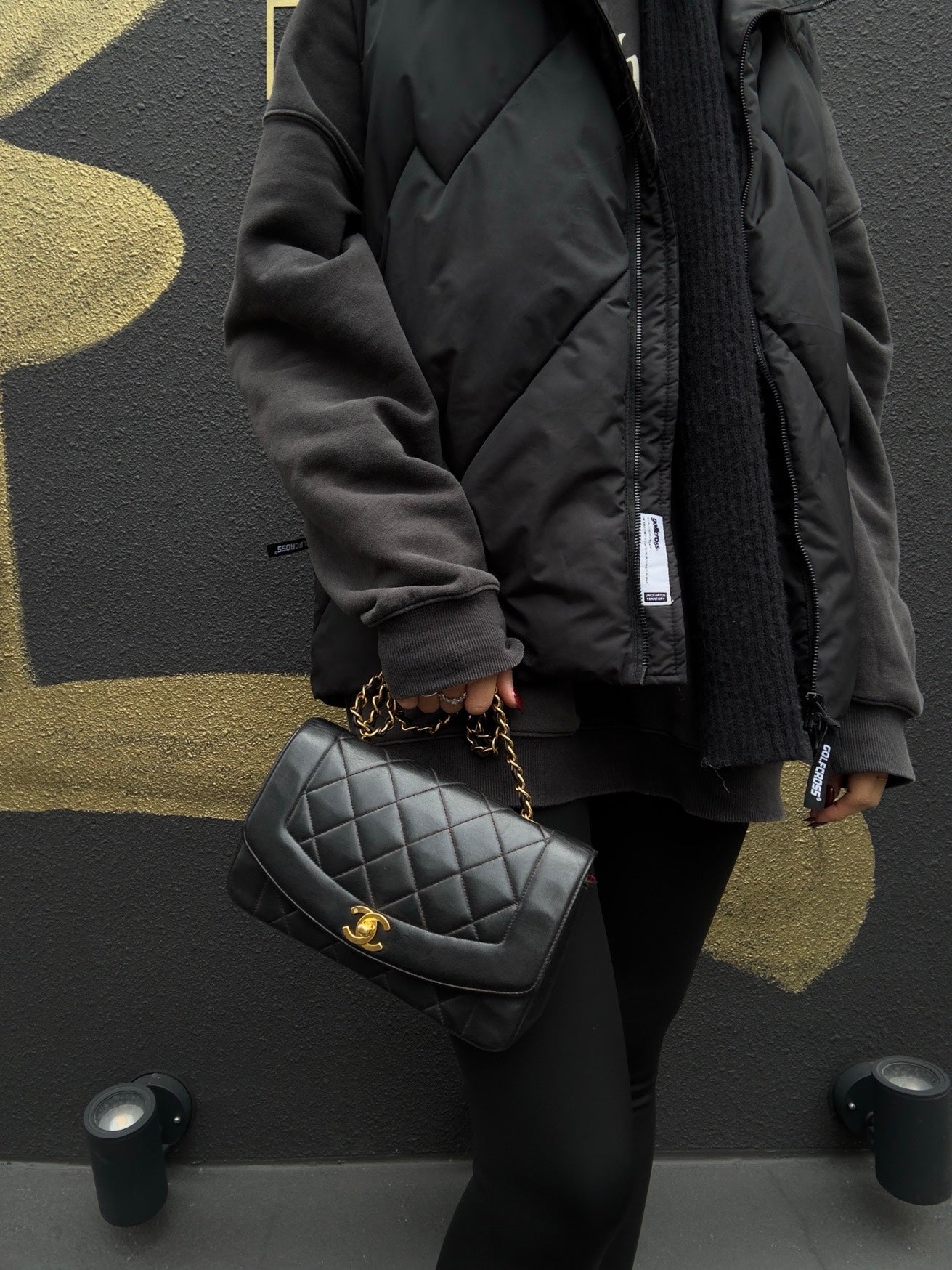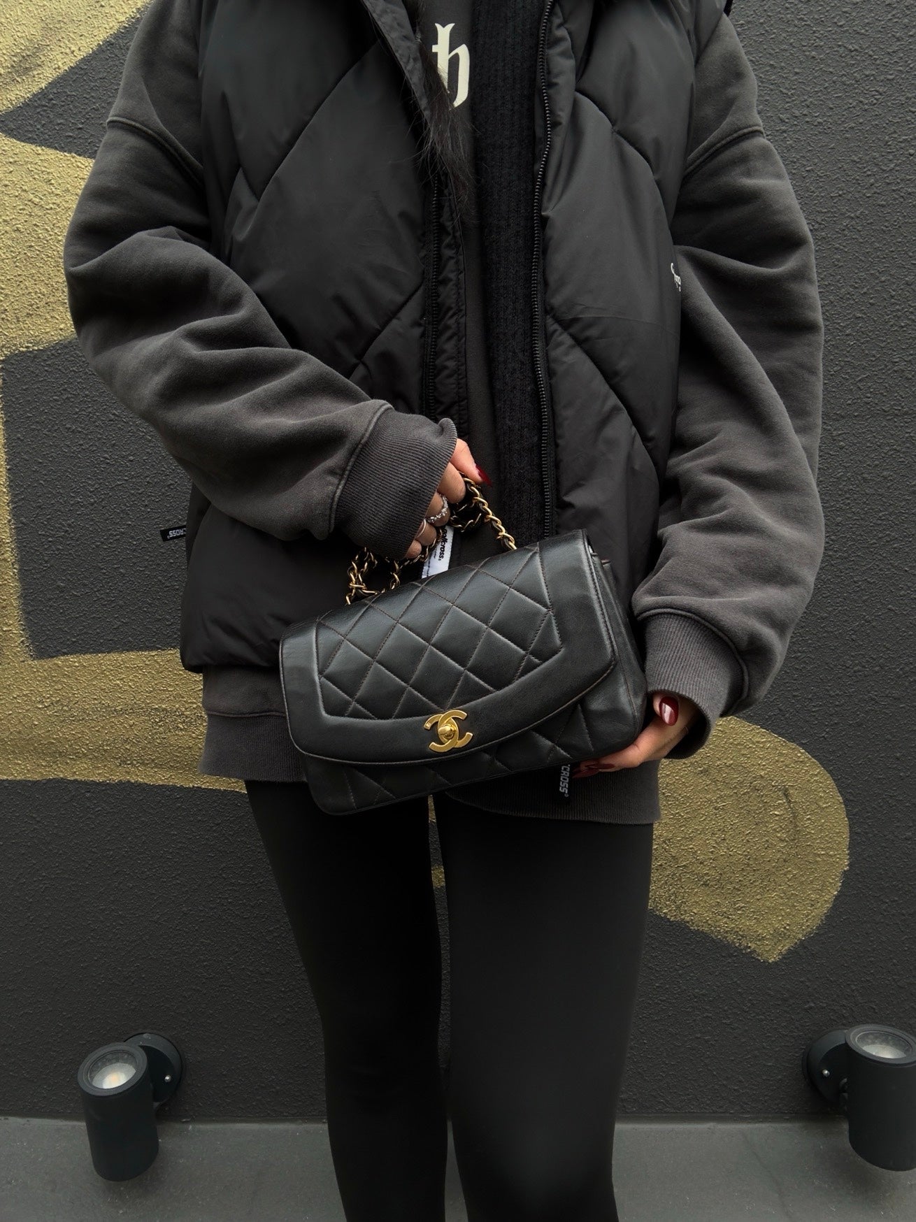 CHANEL Classic Flap (CF) Diana Chain Shoulder Bag, Lambskin, Black Quilted, Gold Hardware, Serial Number Starting with "3", Includes Dust Bag