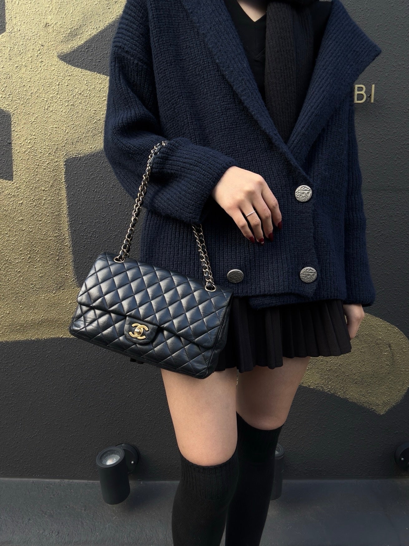CHANEL Classic Flap Matelassé Shoulder Bag, Lambskin, Black, Gold Hardware