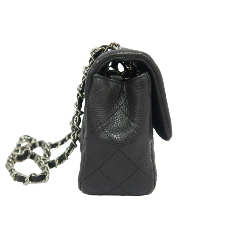 CHANEL Classic Flap Shoulder Bag, Caviar Leather, Black, Silver Hardware, No Worn Photos
