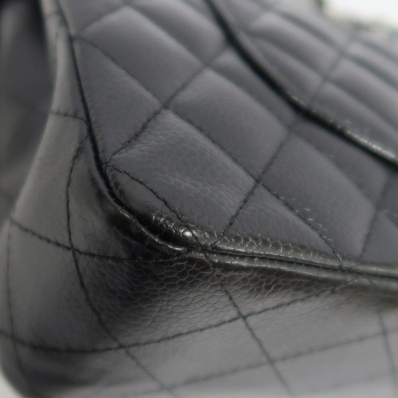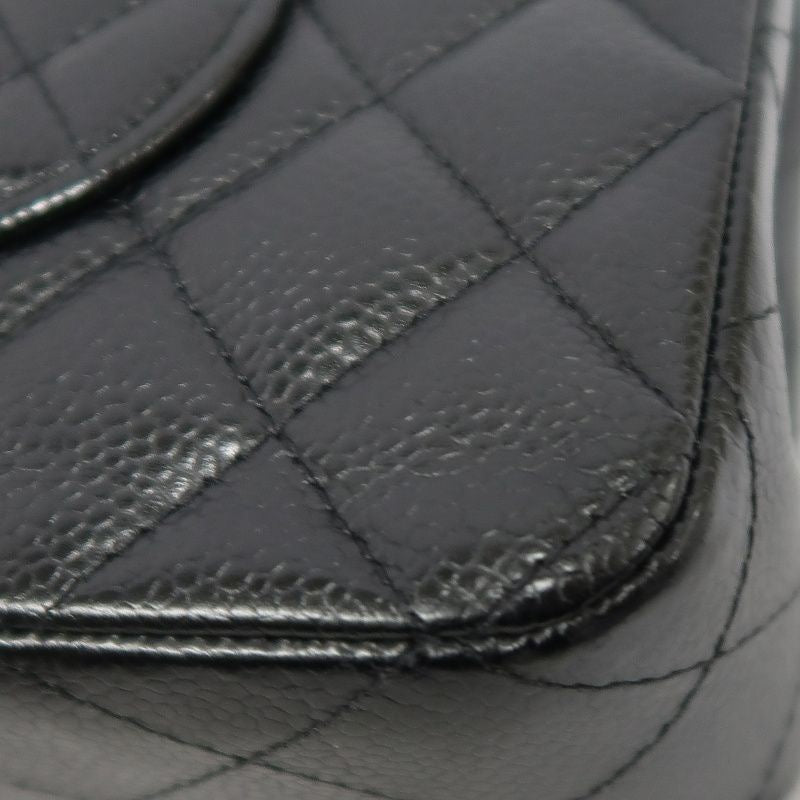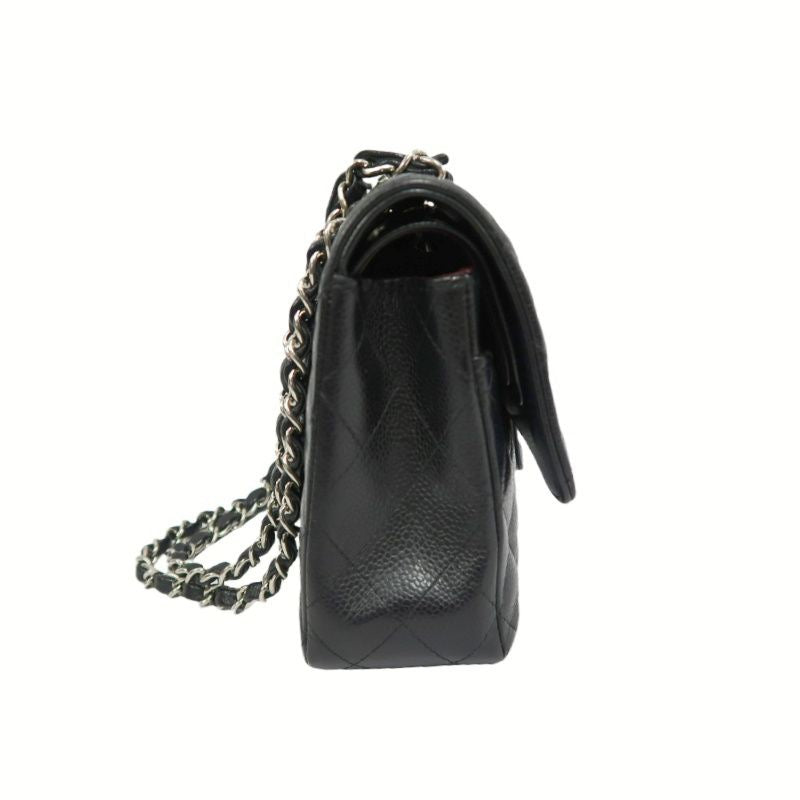 CHANEL Classic Flap Shoulder Bag, Caviar Leather, Black with Silver Hardware, Dust Bag Included