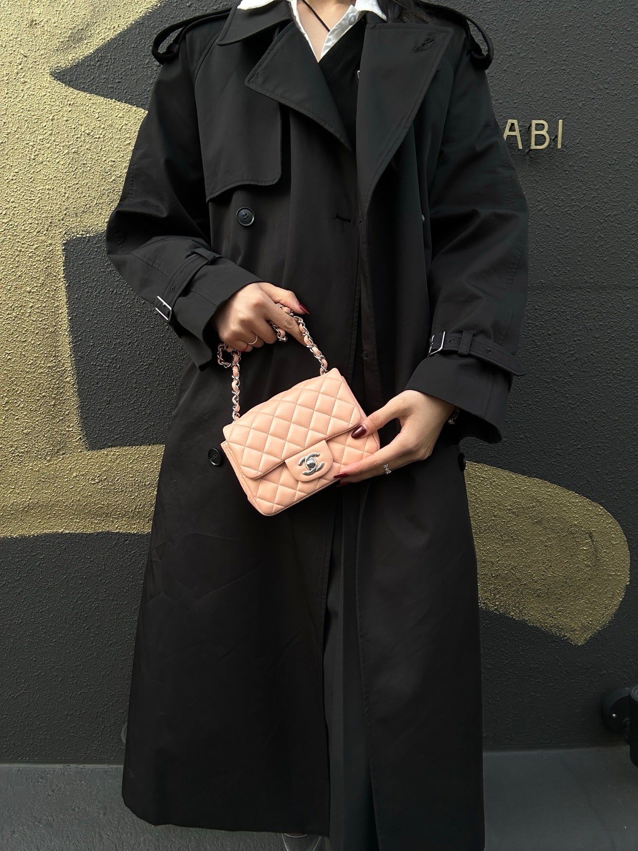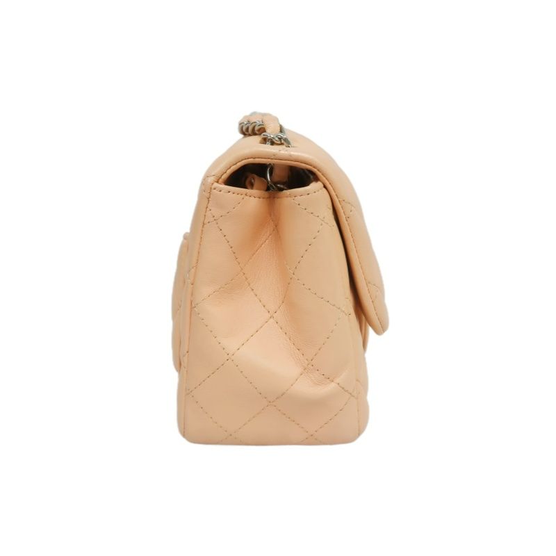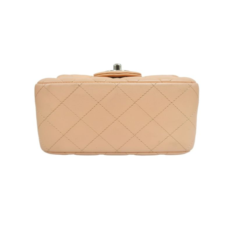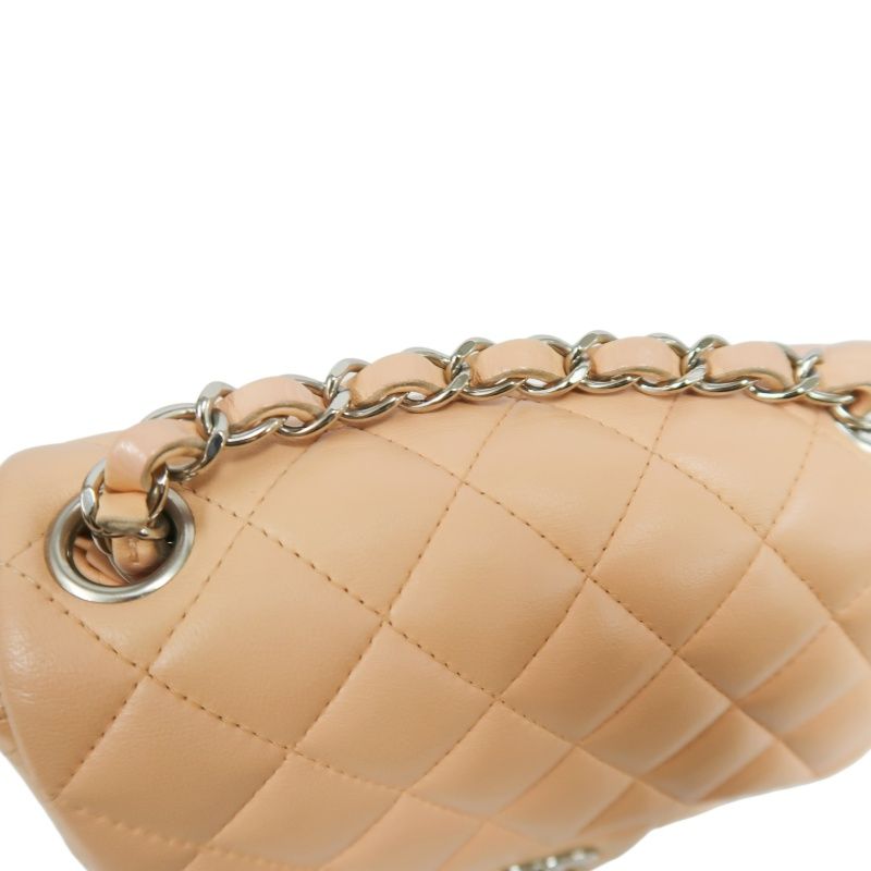 CHANEL Classic Flap Mini Matelassé Crossbody Bag, Lambskin, Beige, Silver Hardware, With Guarantee Card