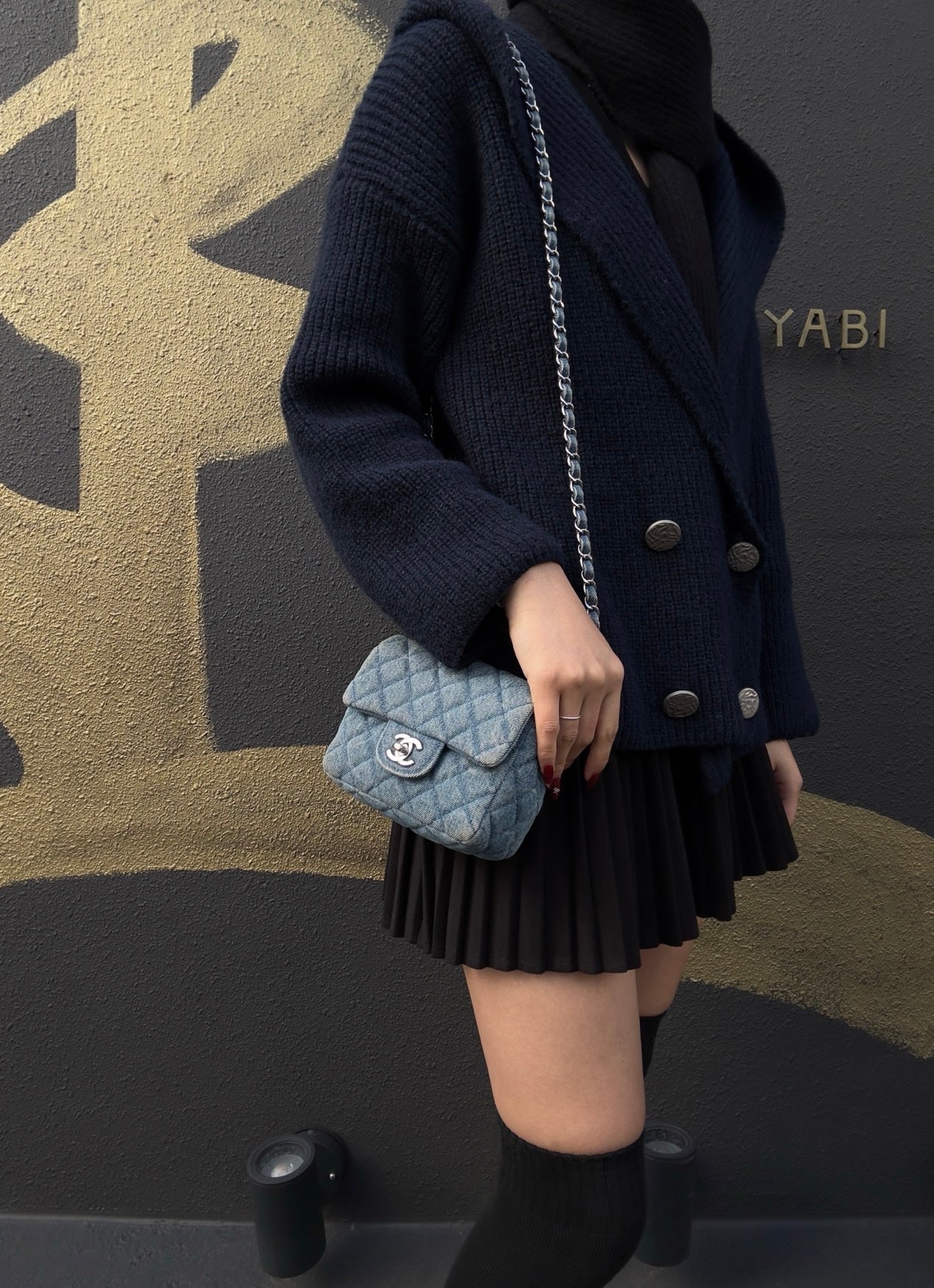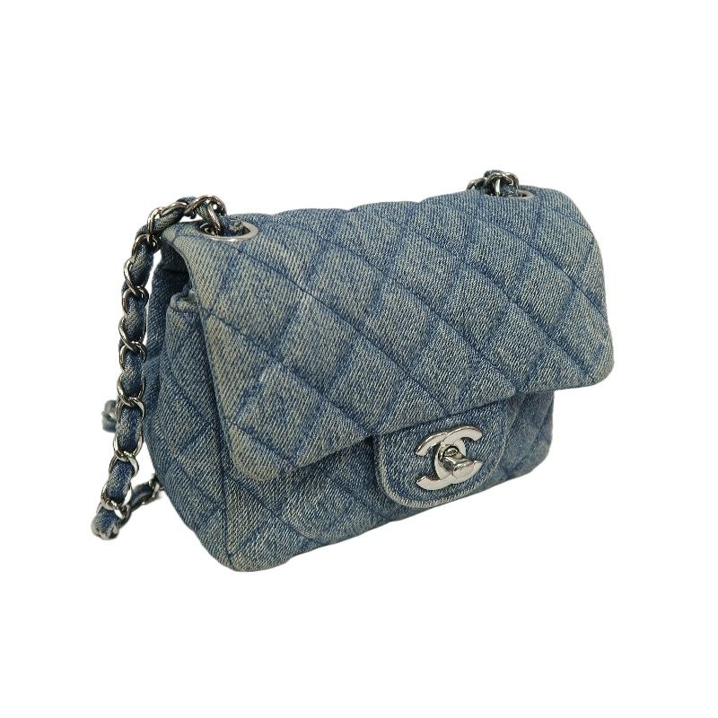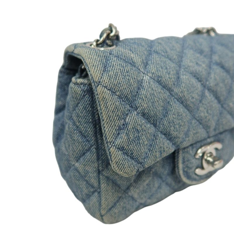 CHANEL Classic Flap Mini Matelassé Crossbody Bag, Denim, Blue, Silver Hardware, With Guarantee Card