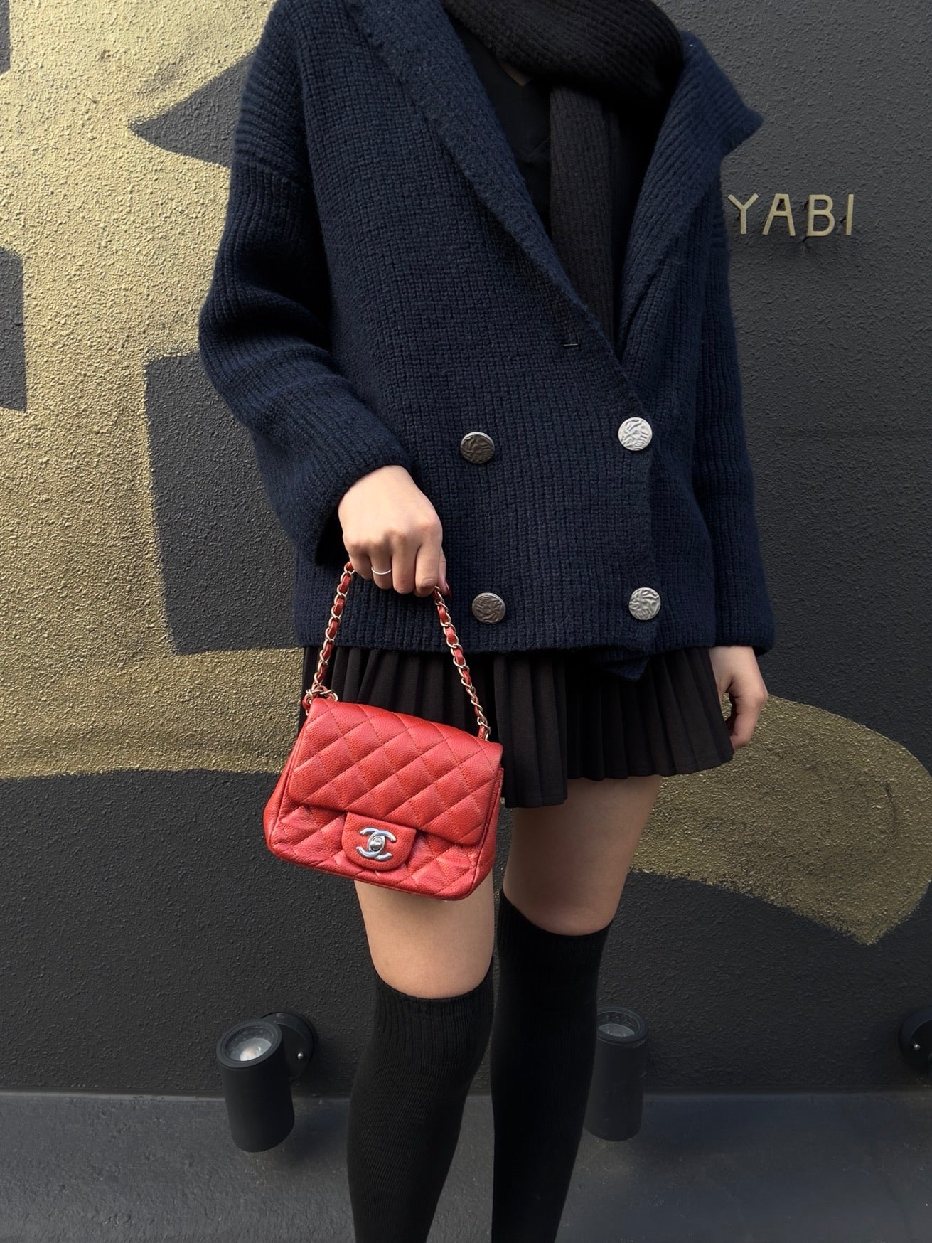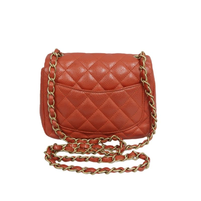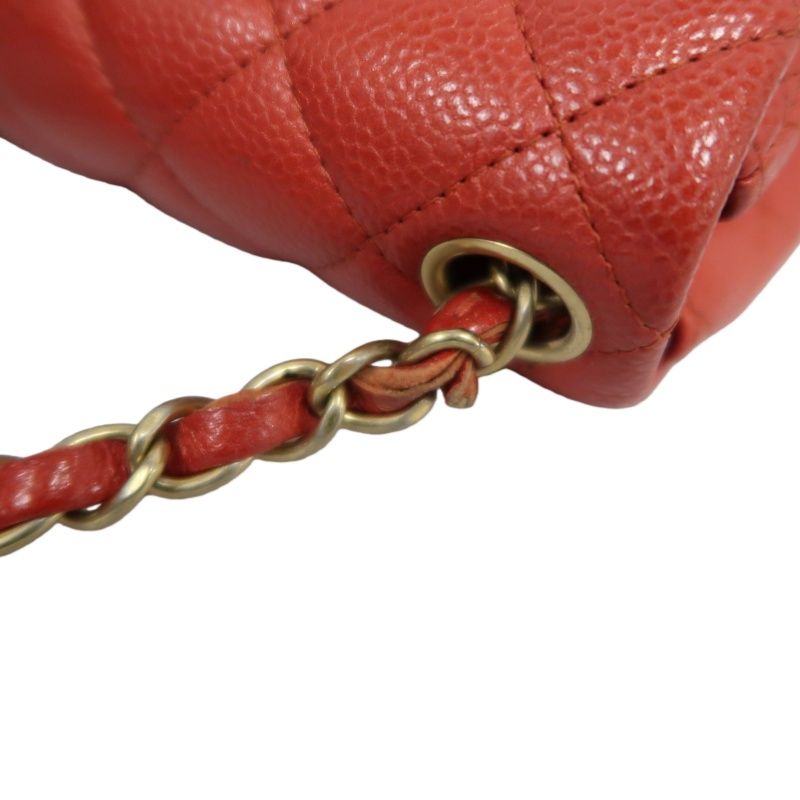 CHANEL Classic Flap Mini Matelassé Crossbody Bag, Caviar Skin, Red, Gold Hardware