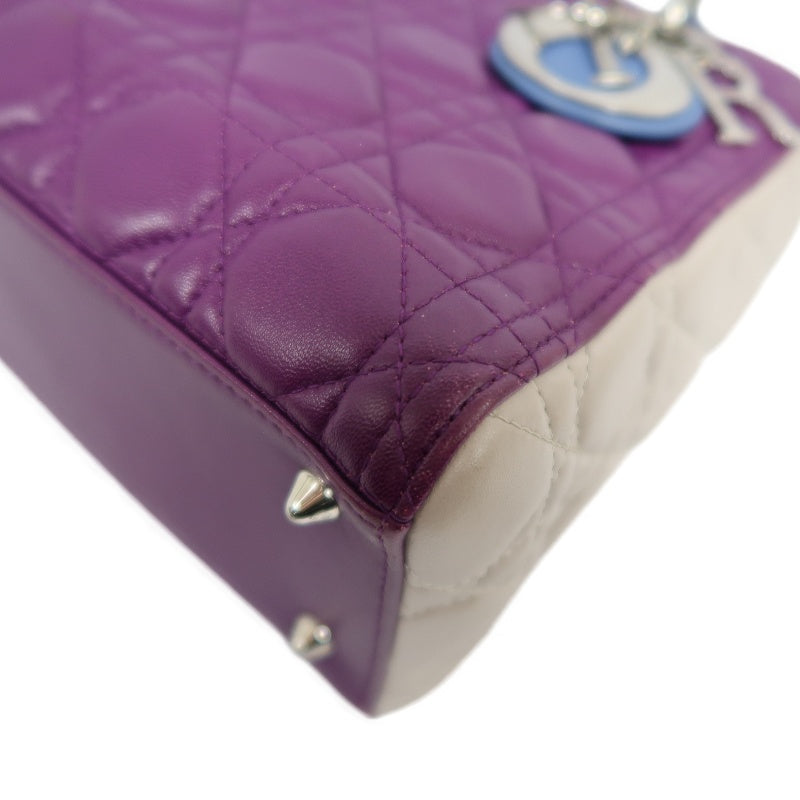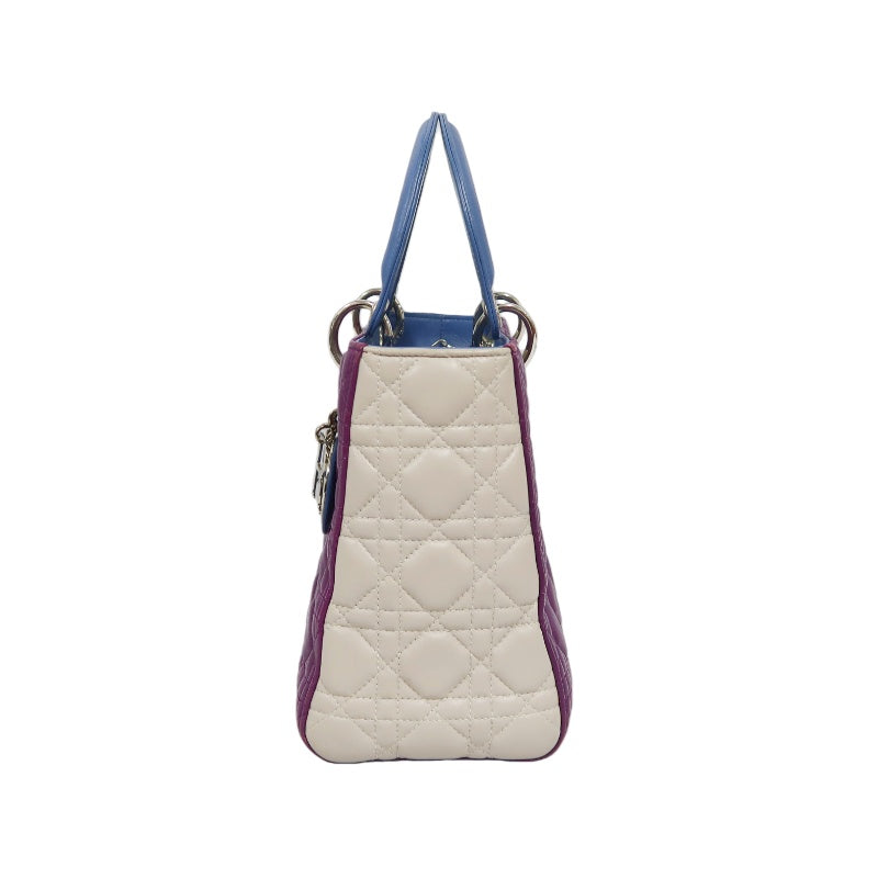 DIOR Cannage Lady Dior Handbag, Purple/Blue, Silver Hardware, Purple PVC, 5-Pocket Lady Dior Tote Bag