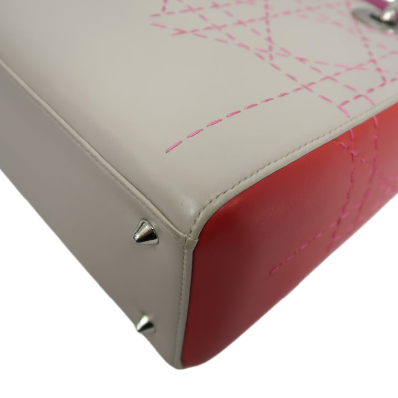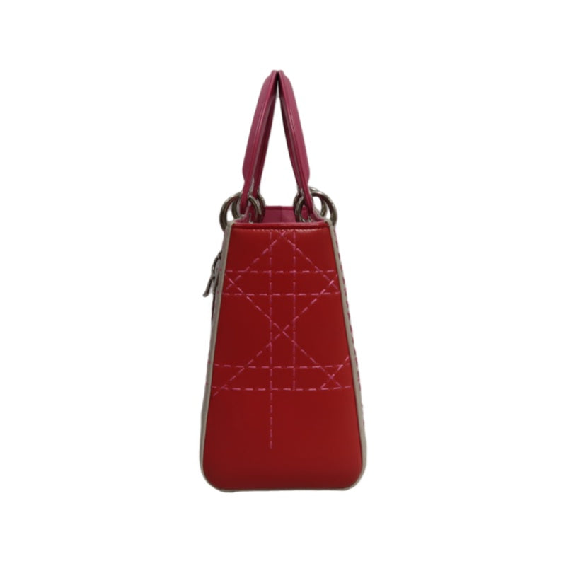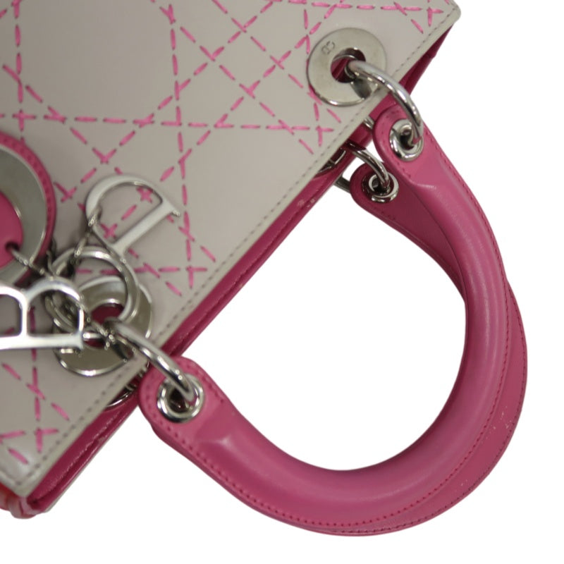 DIOR Lady Dior Cannage Stitch Handbag, Lambskin, Grey Pink, Silver Hardware