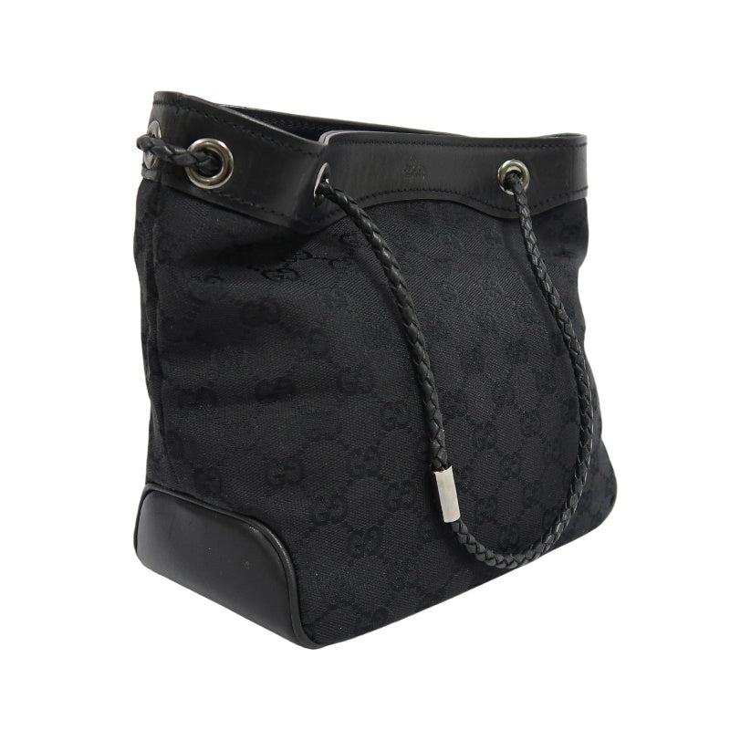 GUCCI GG Canvas Handbag, Black, Silver Hardware, GUCCI Black Monogram Canvas Shoulder Bag