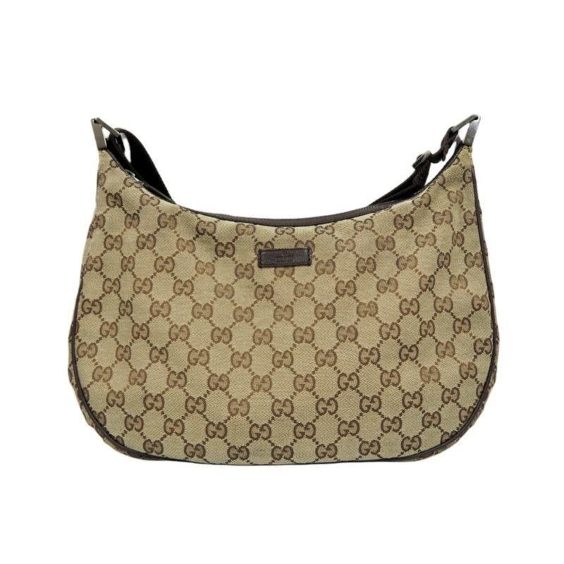 GUCCI GG Canvas Shoulder Bag, Brown with Silver Hardware