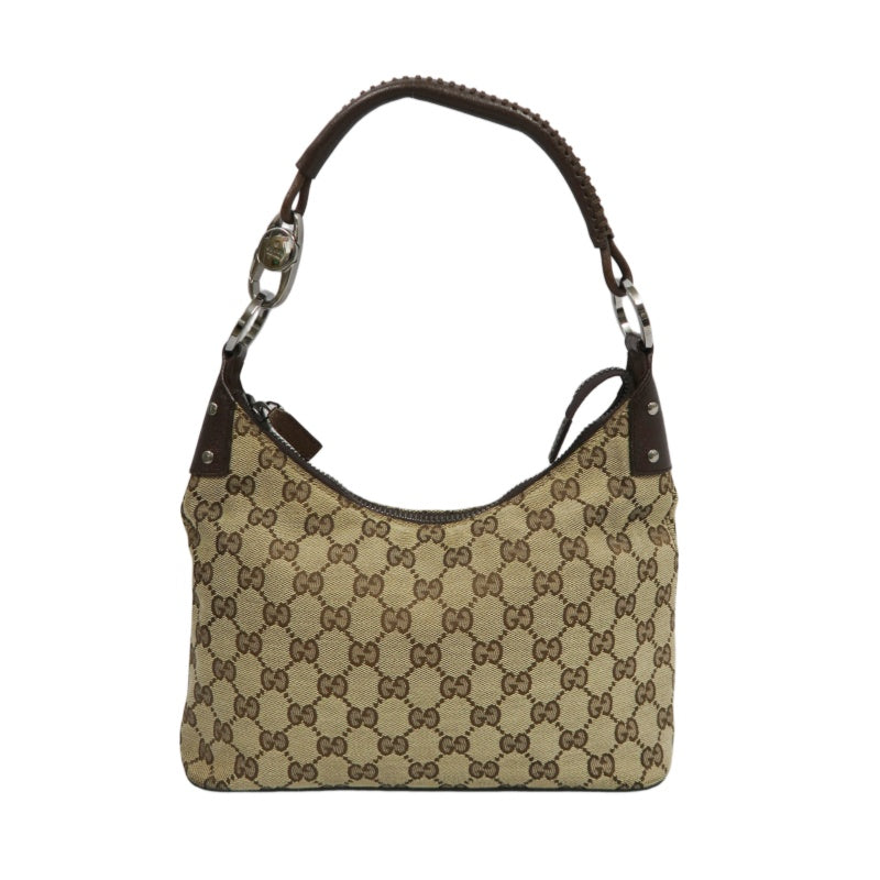 GUCCI GG Canvas Shoulder Bag, Brown with Silver Hardware, GG Monogram Canvas