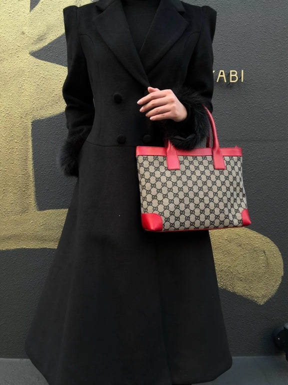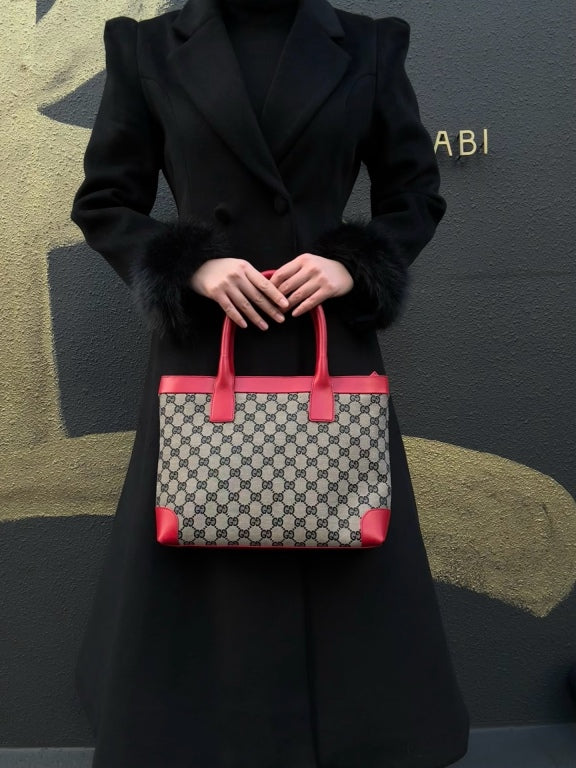 GUCCI GG Canvas Tote Handbag, Brown/Red