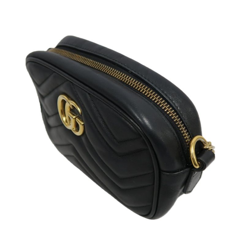 GUCCI GG Marmont Camera Bag, Lambskin, Black, Gold Hardware
