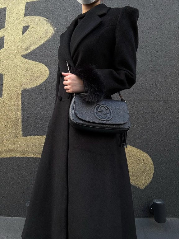 GUCCI Soho Chain Shoulder Bag, Leather, Black, Gold Hardware