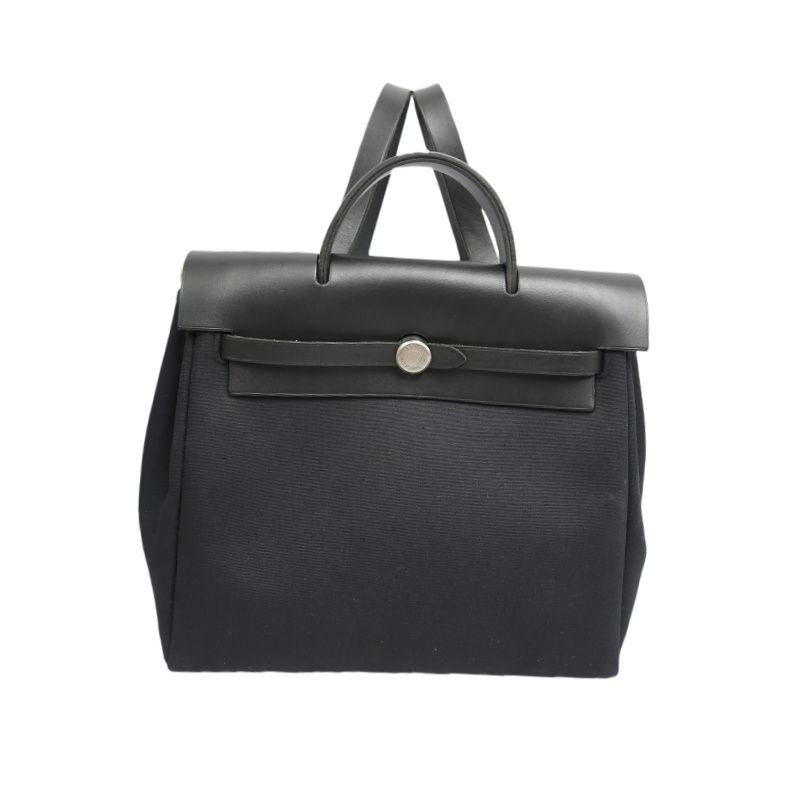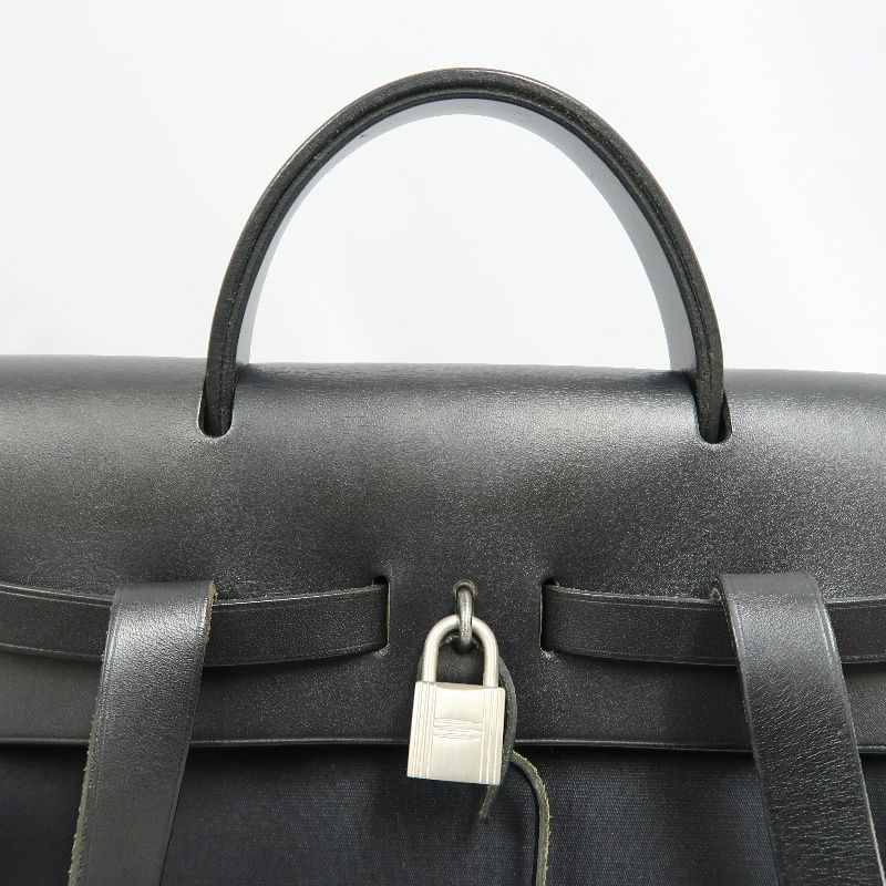 Hermes Ale Bag Ad PM 2-in-1 Canvas Backpack/Handbag Black with Silver Hardware Full Set (Padlock, Strap, 2 Keys, Clochette & Dust Bag)