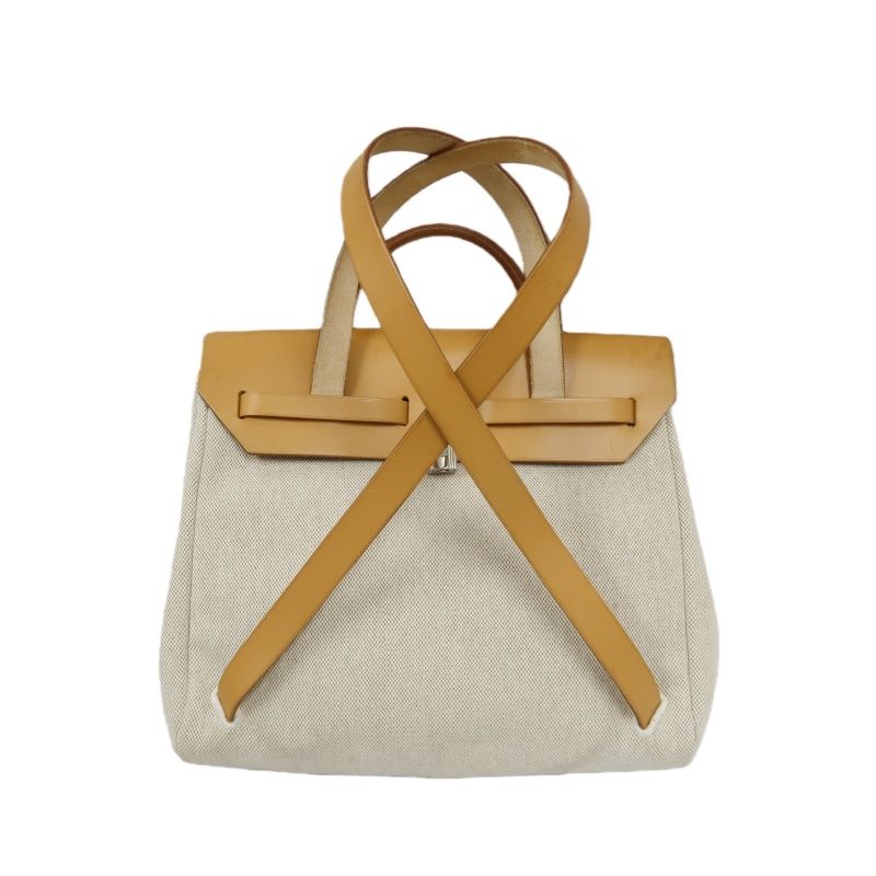 HERMES Beige & Brown Herbag Handbag (With 2 Dust Bags, 2 Padlocks & Keys, Clochette, Extra Bag & Shoulder Strap, Full Box, Canvas)