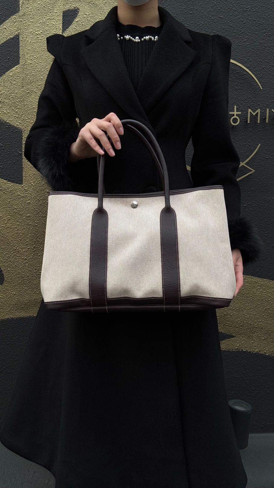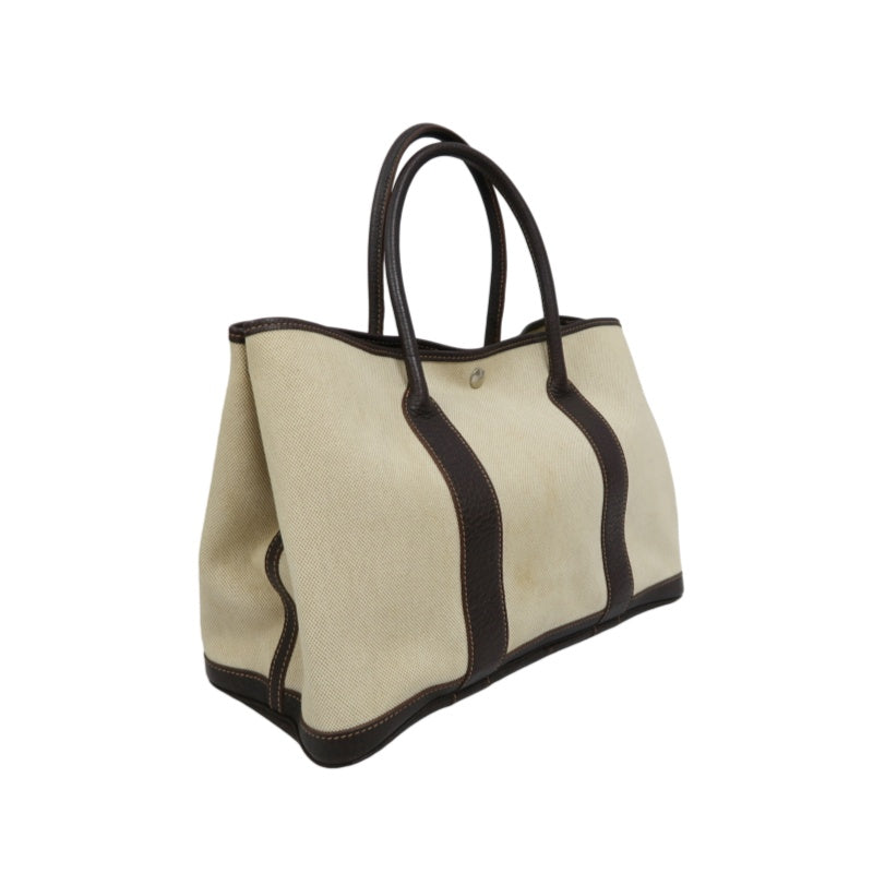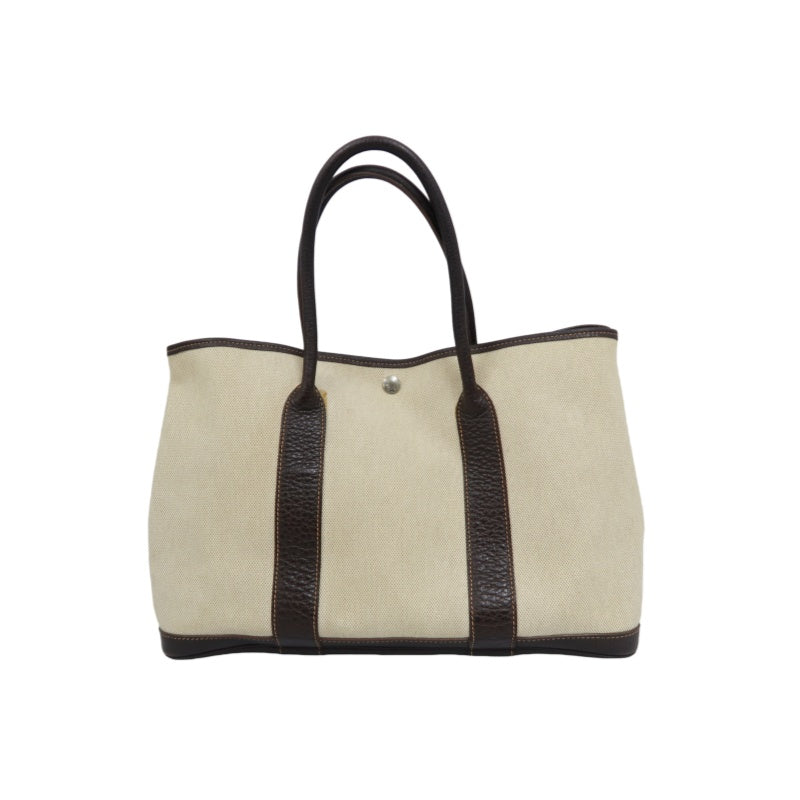 HERMES Garden Party PM Tote Bag, Beige, Canvas