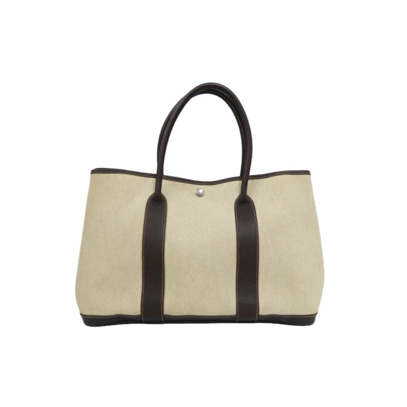 HERMES Garden Party PM Tote Bag, Beige, Canvas
