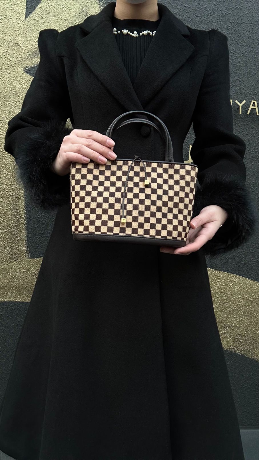 LOUIS VUITTON Impala Damier Sauvage Handbag, Brown, Suede, LV Damier Check, Antelope Fur