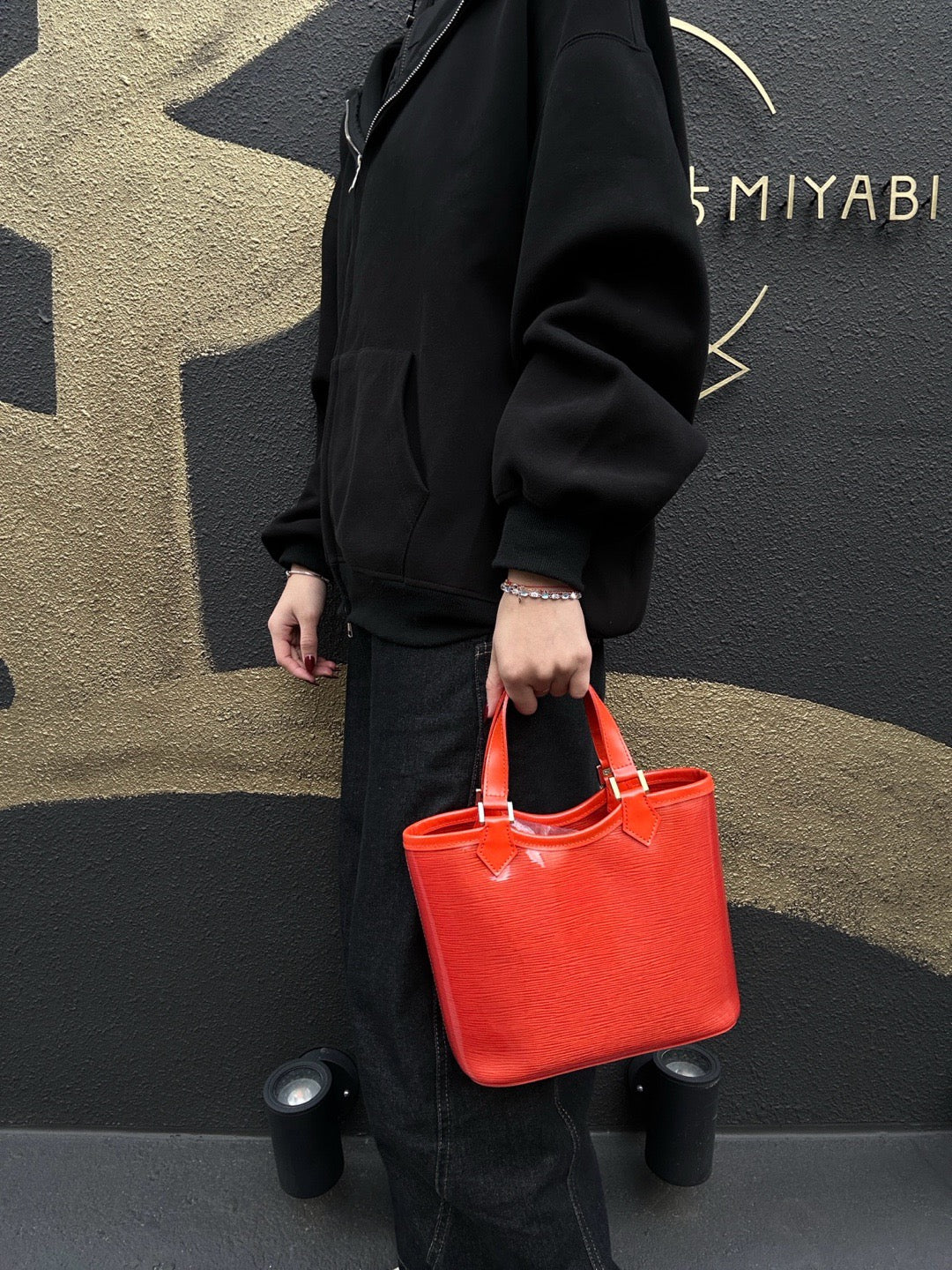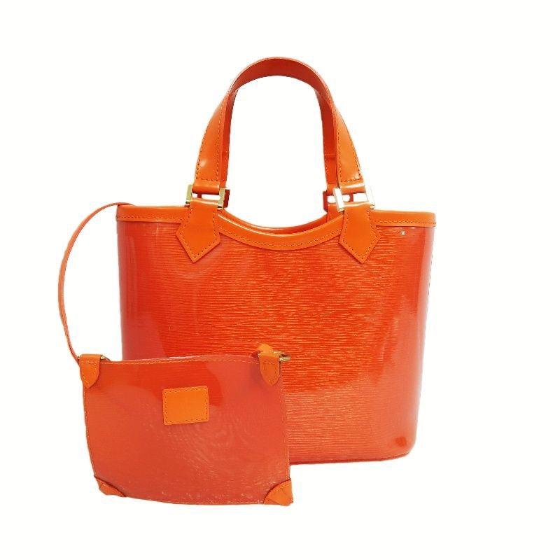 Louis Vuitton Orange Epi Leather Clear Vinyl Tote Handbag with Pouch
