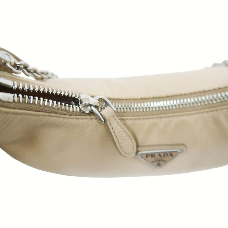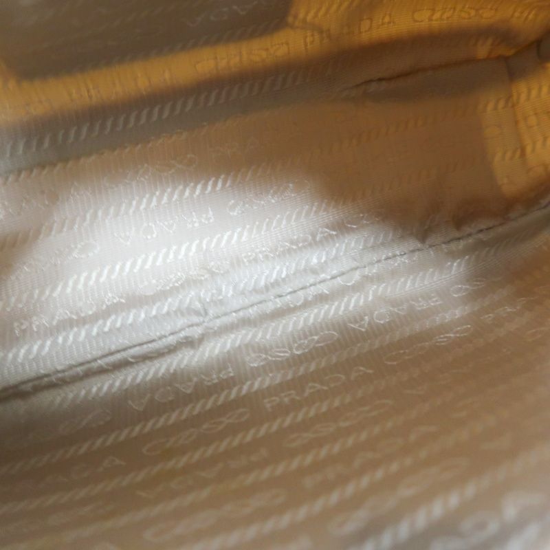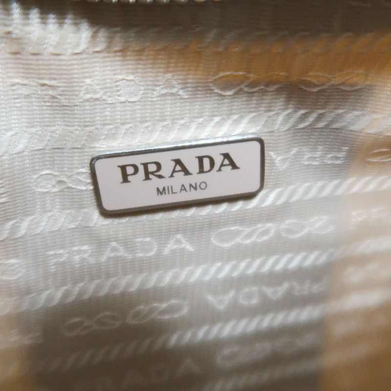 PRADA Handbag, Nylon, Beige with Silver Hardware, Detachable Shoulder Strap Included, Pouch Included, Dust Bag Included