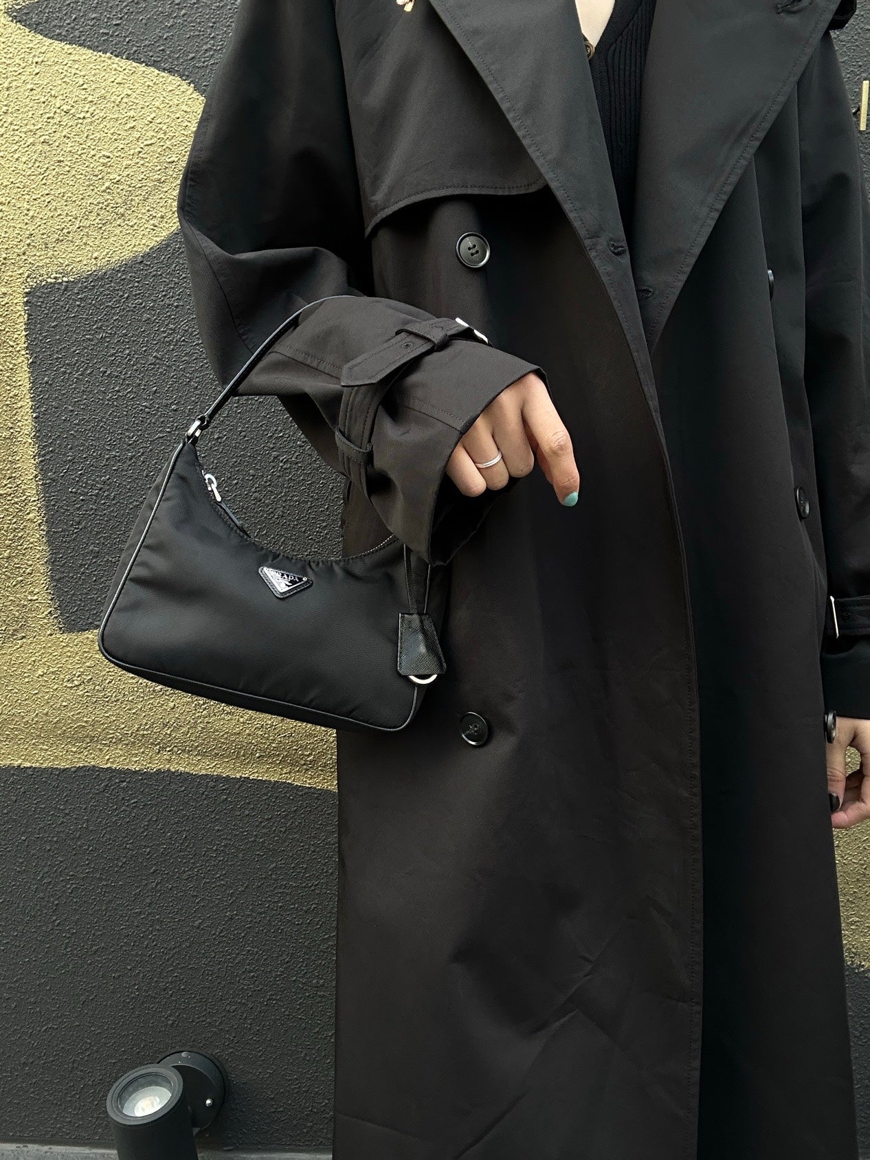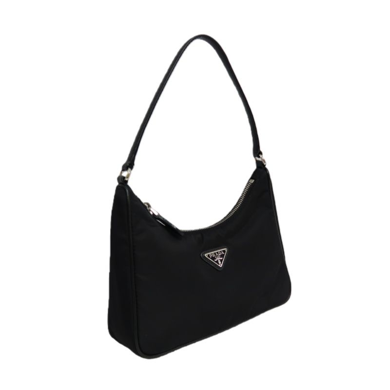 PRADA Handbag, Nylon, Beige with Silver Hardware, Detachable Shoulder Strap Included, Pouch Included, Dust Bag Included
