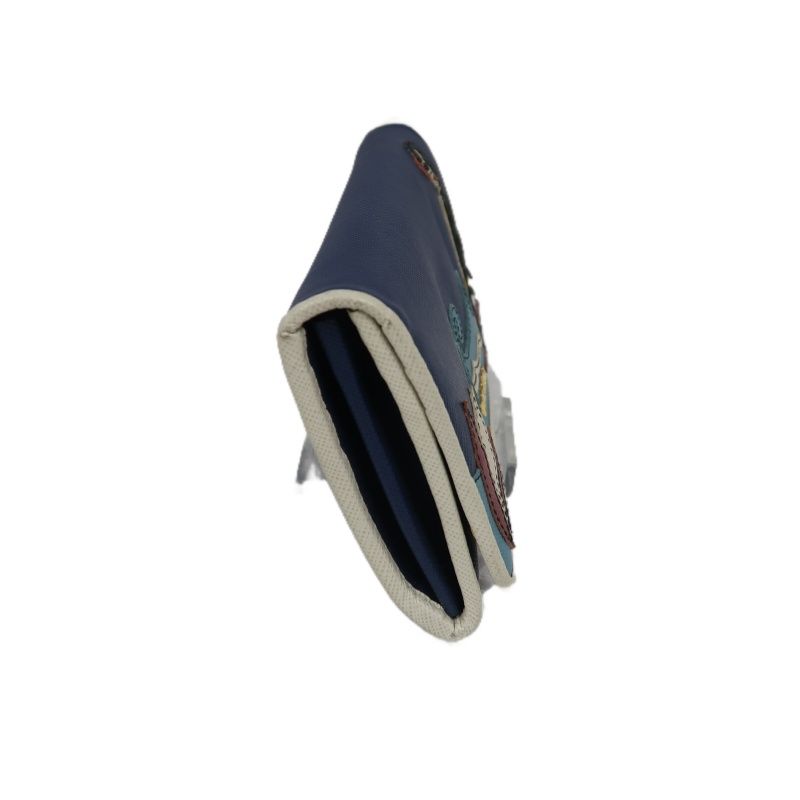 PRADA Women's Wallet, Hawaiian Line, Saffiano PVC (Colorful "o¡ê¡À??¨¤¨¨?" Print), Blue, Includes Guarantee Card, Box & Tissue Paper